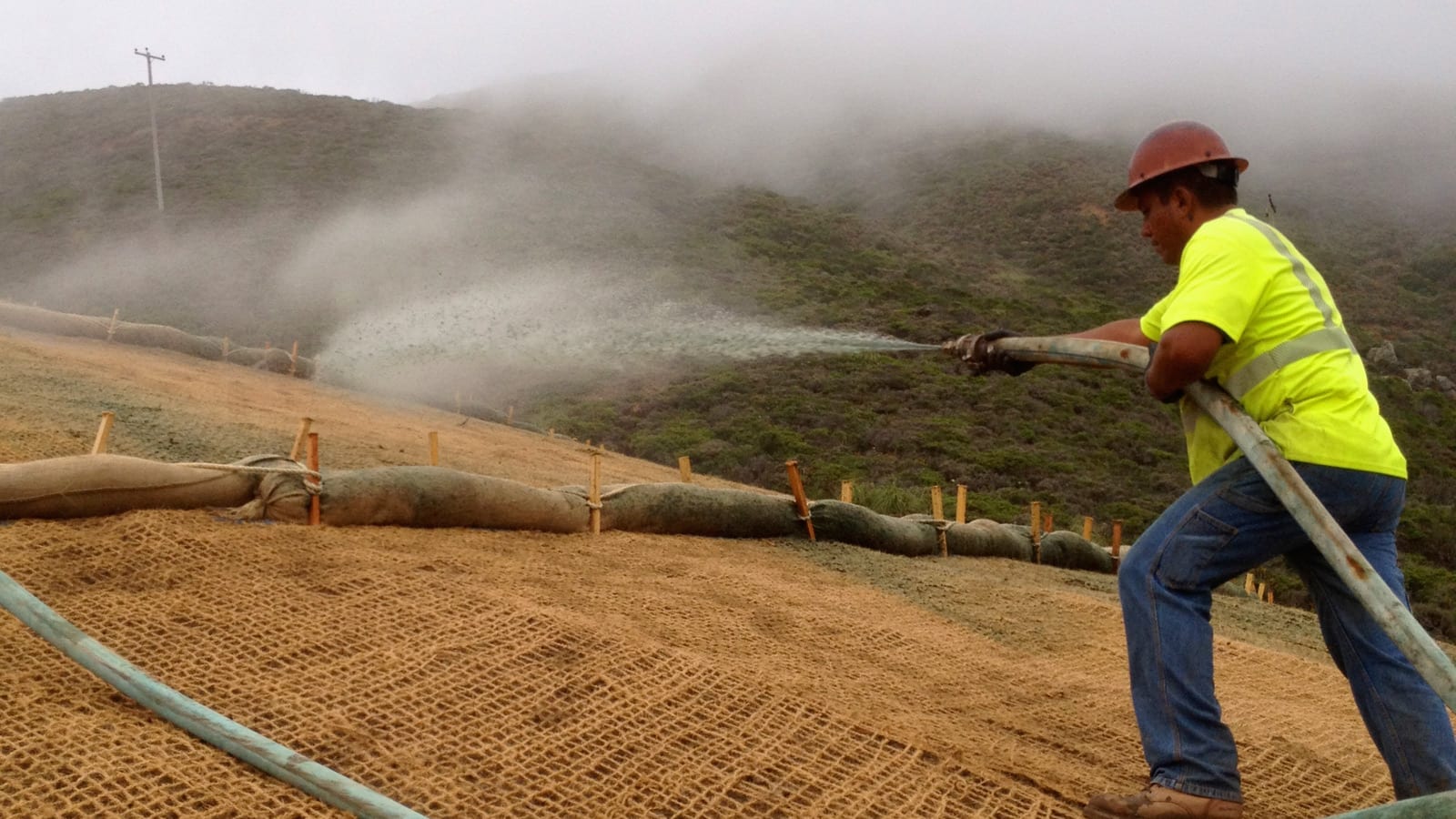 Very steep slopes cannot be seeded by Hydroseeding alone. A bonded fiber matrix or hydraulic mulch is required to stick the hydroseed to steep slopes and provide a substrate for initial growth.